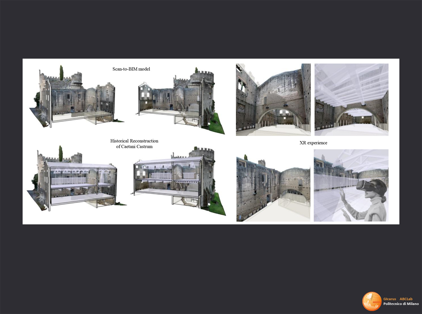 Il progetto si inquadra nell’ambito delle attività di studio volta a supportare la progettazione delle opere di percorso di accessibilita’ multimediale tra il III e il V miglio dell’Appia Antica. In particolare, la progettazione di ambienti multimediali e di percorsi di accessibilita’ per postazioni VR/AR/XR hanno richiesto una specifica attivita’ di rilievo e modellazione volte a generare modelli digitali di supporto.